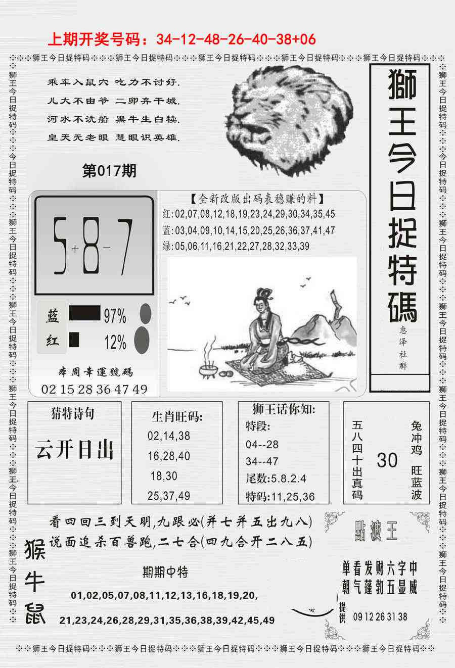 017期: 澳门六合皇彩圖信封【狮王平特】每期自动更新
