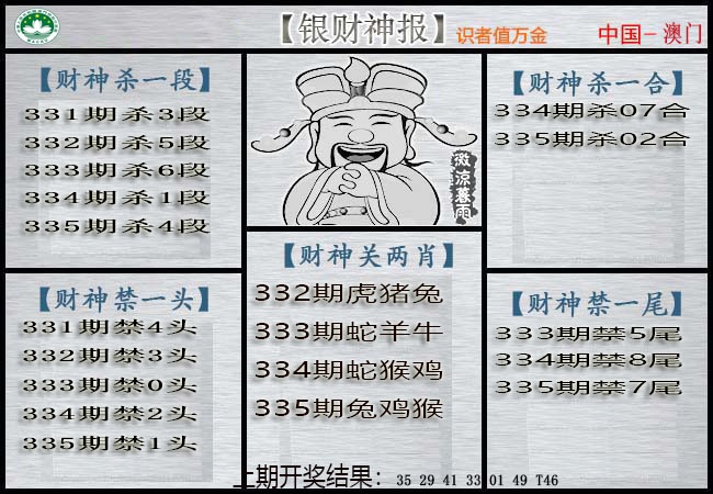 335期: 澳门六合皇彩圖信封【平财神报】每期自动更新