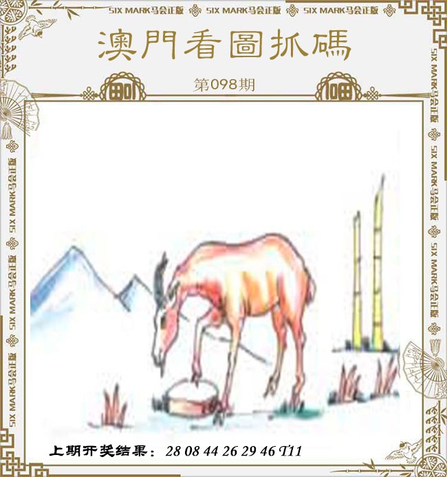【抓码图】098期:图中一只羊,地上有很多草,后面有2支竹竿,解羊兔马牛龙狗。 |